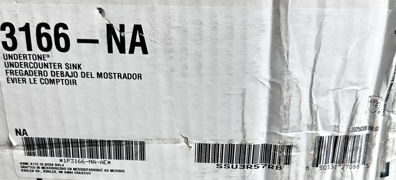 KOHLER 3166-NA TRIPLE BOWL UNDERMOUNT KITCHEN UNDERCOUNTER SINK 3166-NA-AE This item is new and internally sealed in a slightly freight worn box.