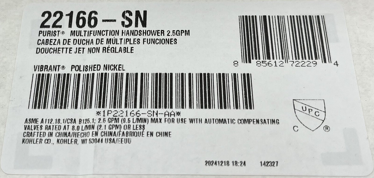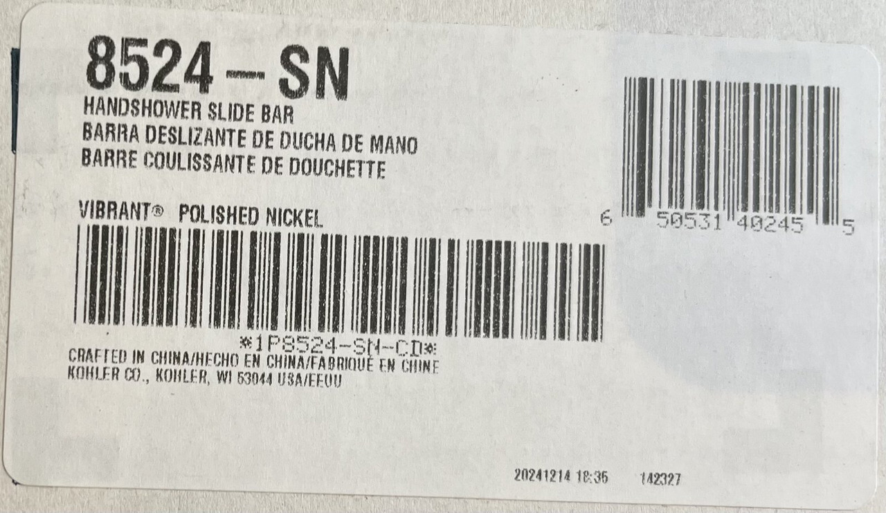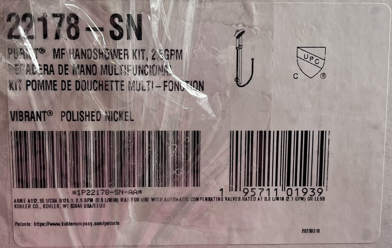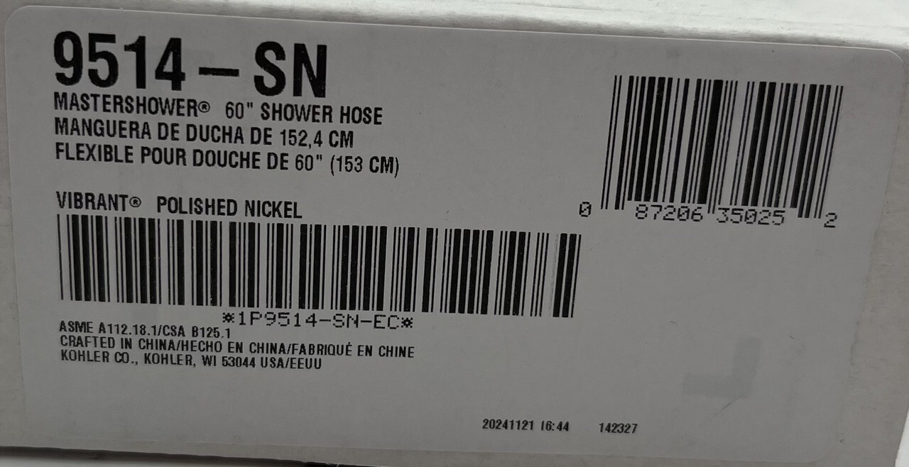 KOHLER 22178-SN POLISHED NICKEL HANDSHOWER KIT 2.5 GPM 8524 9514 22166-SN These items are brand new in a freight worn box as shown.