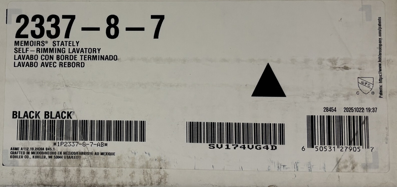 Kohler 2337-8-7 Self-Rimming Lavatory Black Sink This item is new and sealed as shown.