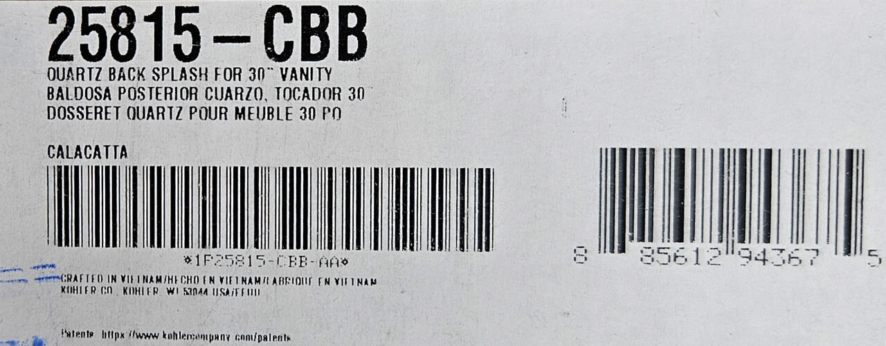 KOHLER 25815-CBB Vanity Quartz Backsplash 4" x 30" Calacatta This item is new as shown.