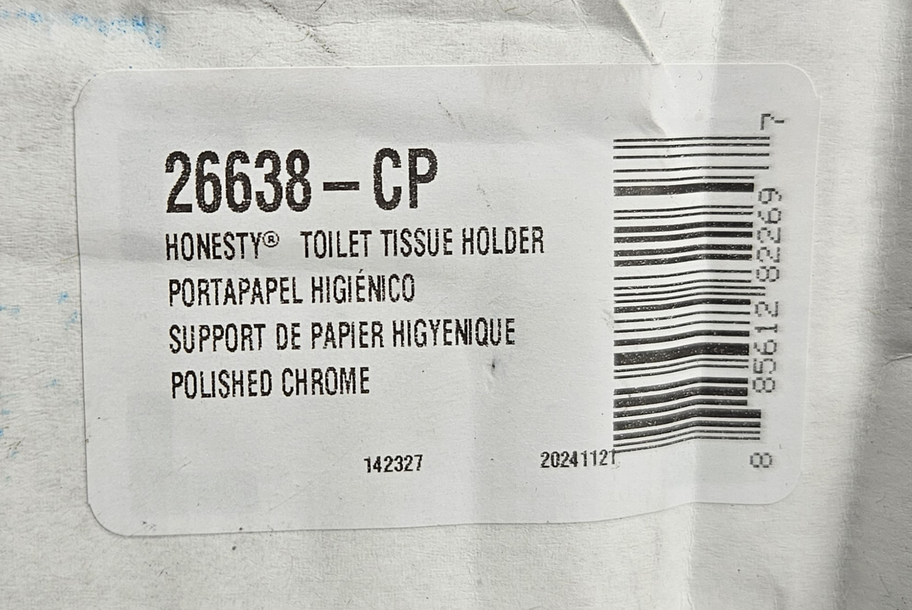 KOHLER 26638-CP HONESTY Pivoting toilet paper holder POLISH CHROME This item is new sealed in a freight worn box as shown.