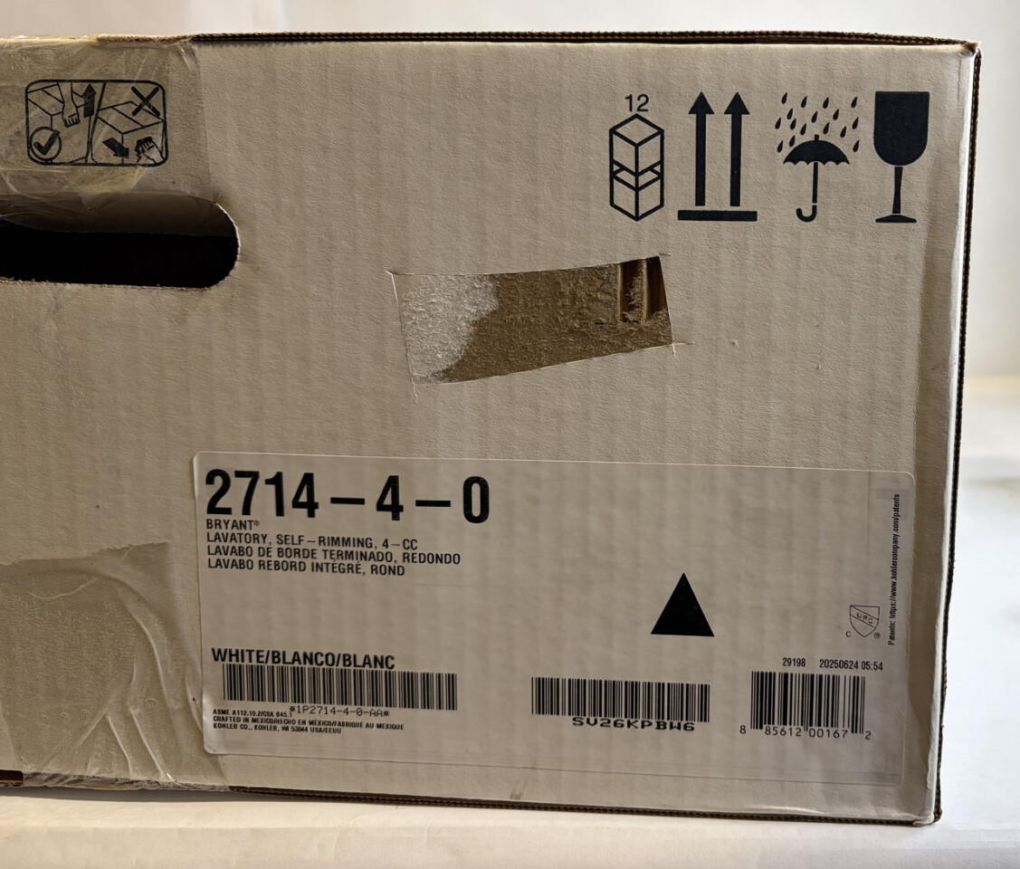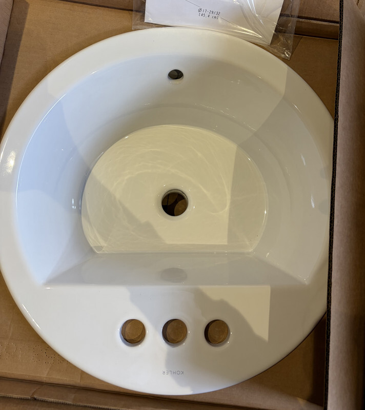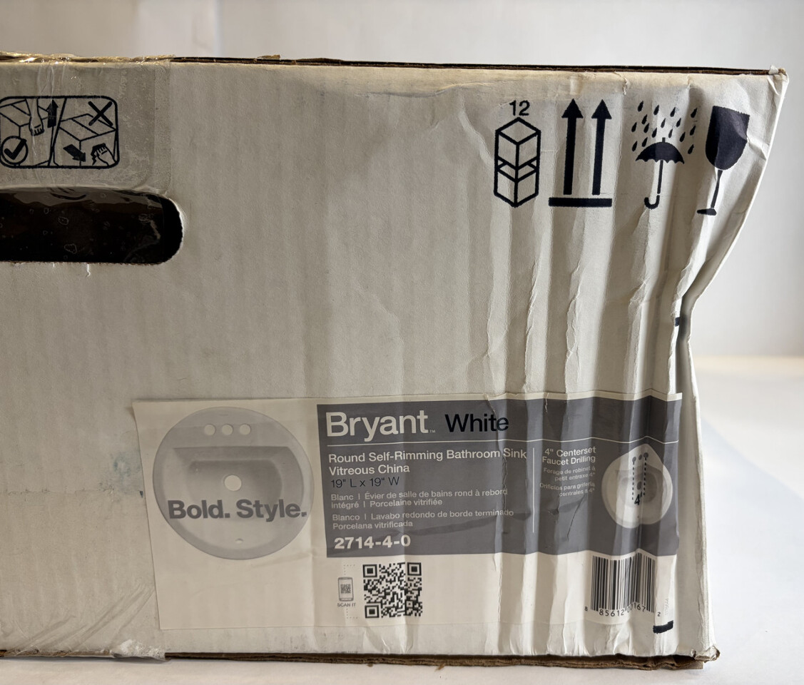 Kohler 2714-4-0 Bryant White Round self rimming Bathroom Sink 19"Lx19"W This item is new in original open box as shown