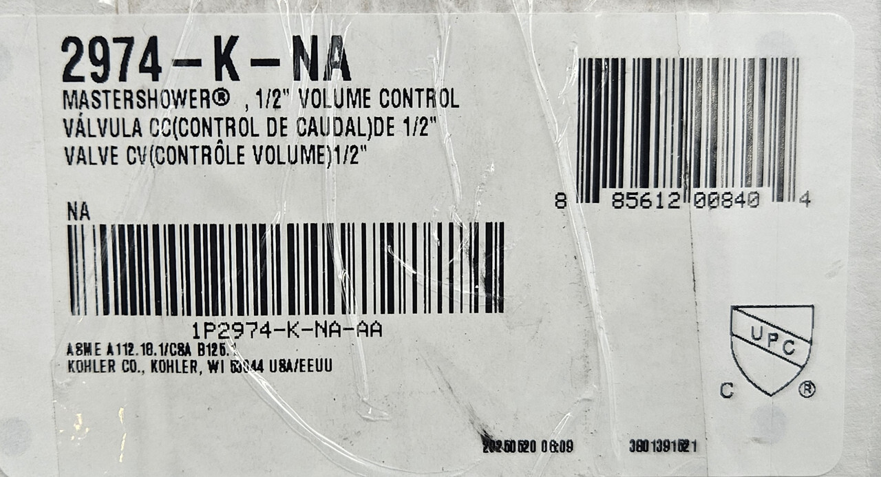 KOHLER 2974-K-NA MASTERSHOWER 1/2" VOLUME CONTROL VALVE This item is brand new in an open box as shown.