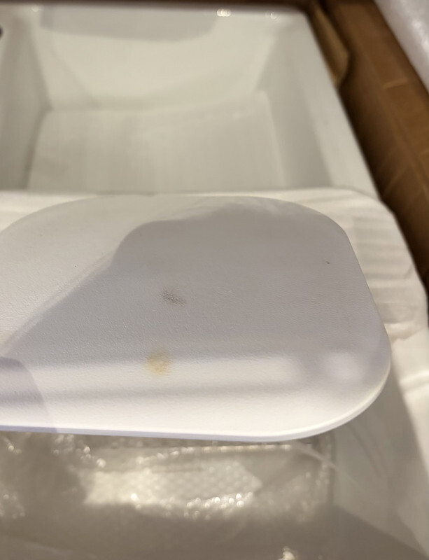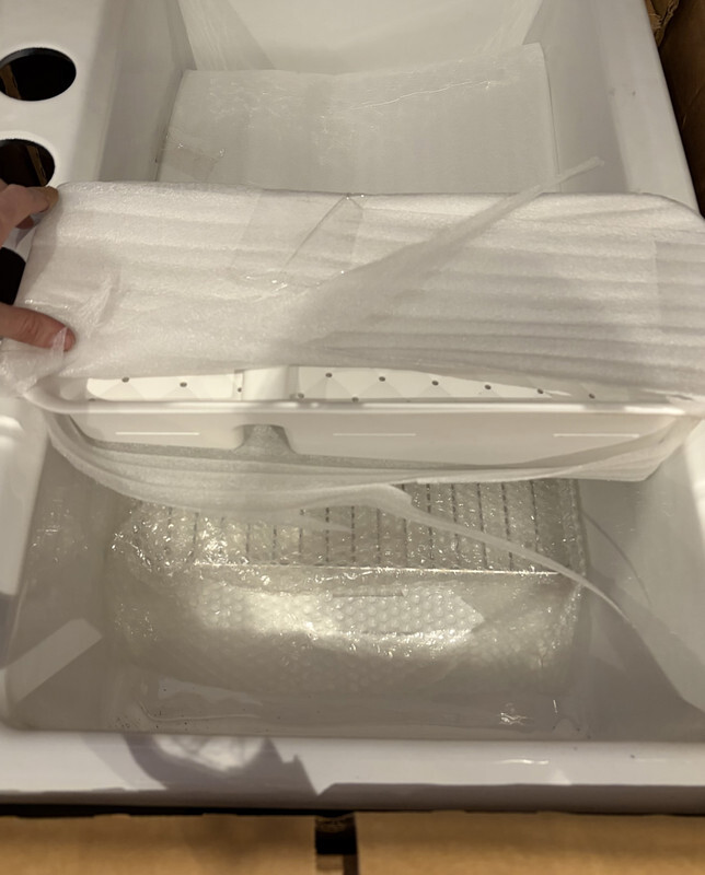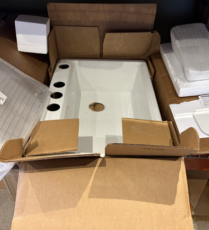 - Notes: This sink has manufactor packaging and original freight worn box as shown. One accessory has cosmetic ware as shown. Dimensions include: 33" x 15.75" X 9.7"