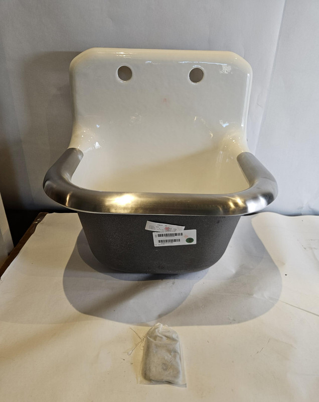 KOHLER 6714-0 Bannon 22-1/4" cast iron wall-mount service sink white This item is brand new in a freight open worn box as shown.