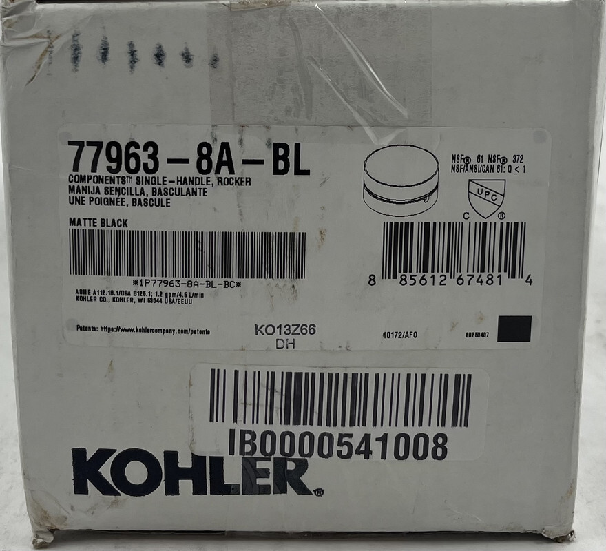 KOHLER 77963-8A-BL MATTE BLACK COMPONENTS SINGLE-HANDLE, ROCKER This item is new in an open box as shown.