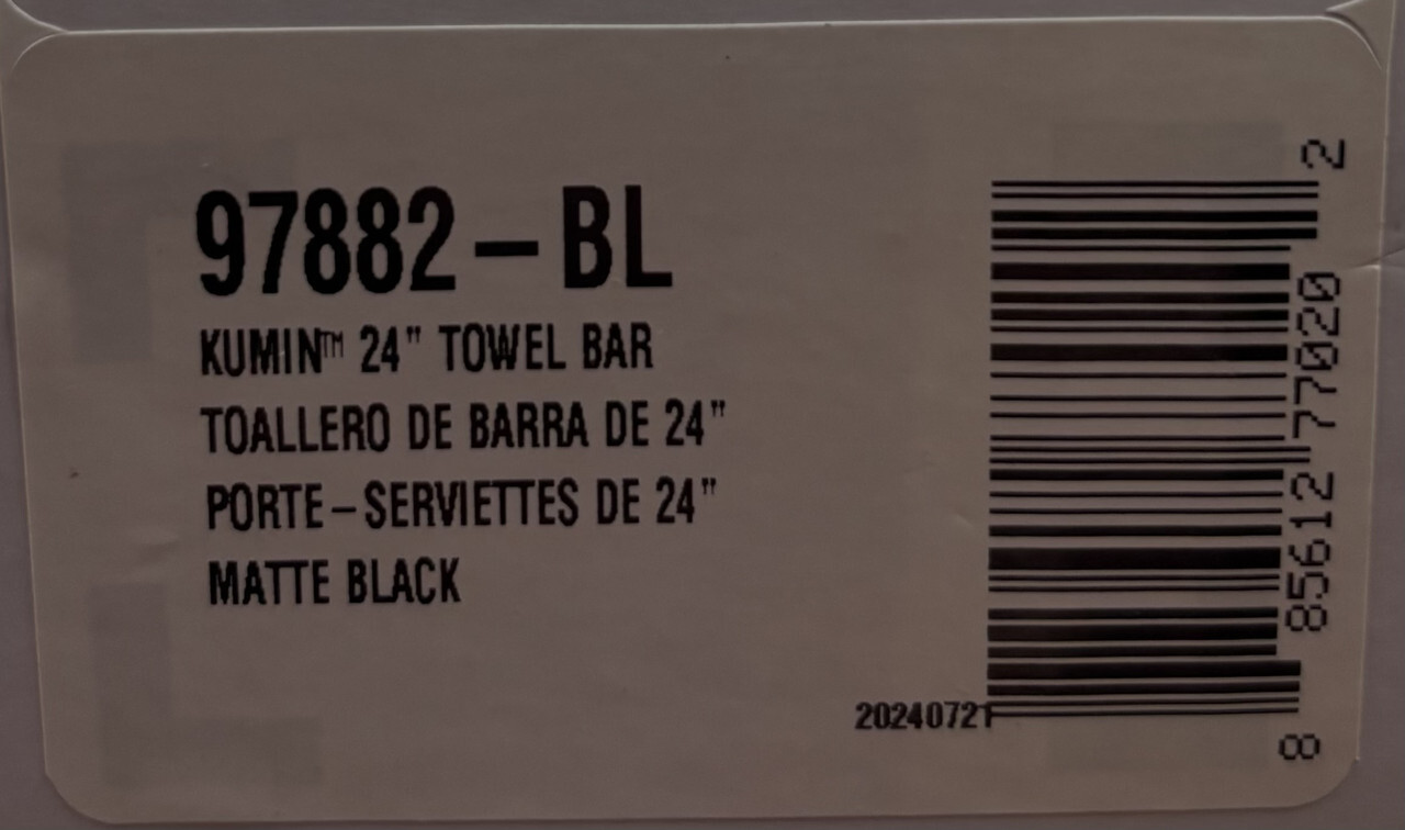 Kohler 97882-BL Kumin 24 Inch Towel Bar Matte Black With Original Box This item is brand new and comes in the original box as shown.