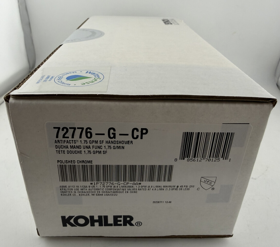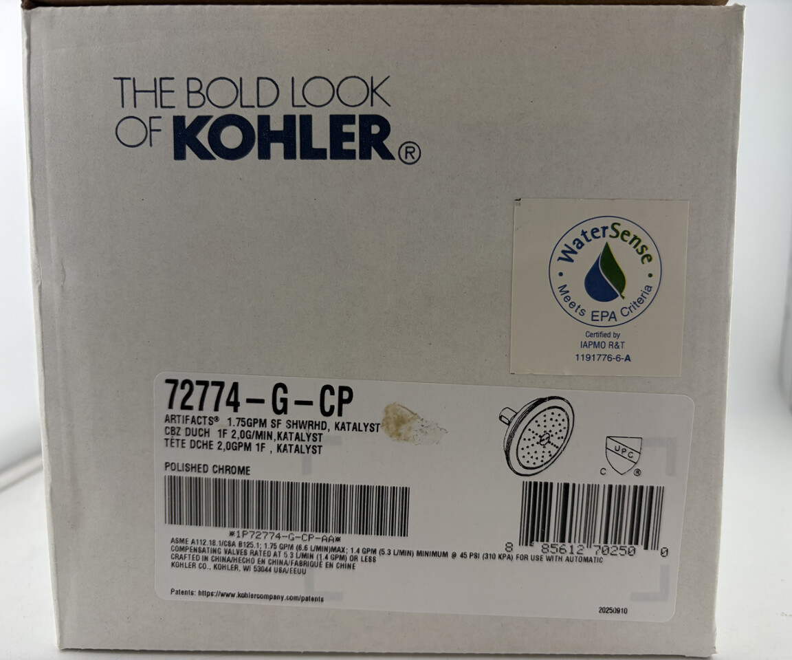 Kohler Artifacts HydroRail 1.75 GPM Single Function Showerhead 76472-G-CP This item is new in original open box as shown.