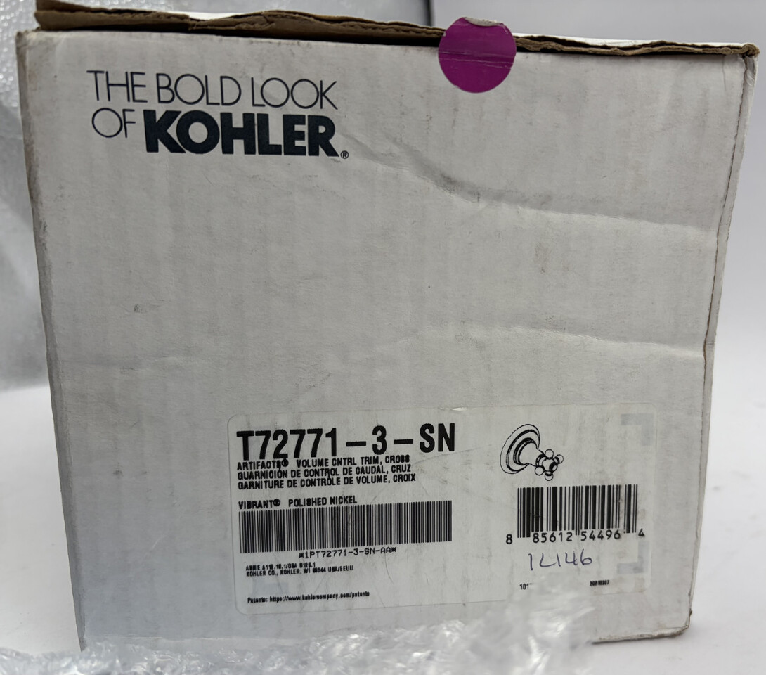 KOHLER ARTIFACTS VOLUME CONTROL TRIM/CROSS SHOWER T72771-3-SN VIB POLISHED NICKEL This item is new in an open box as shown.