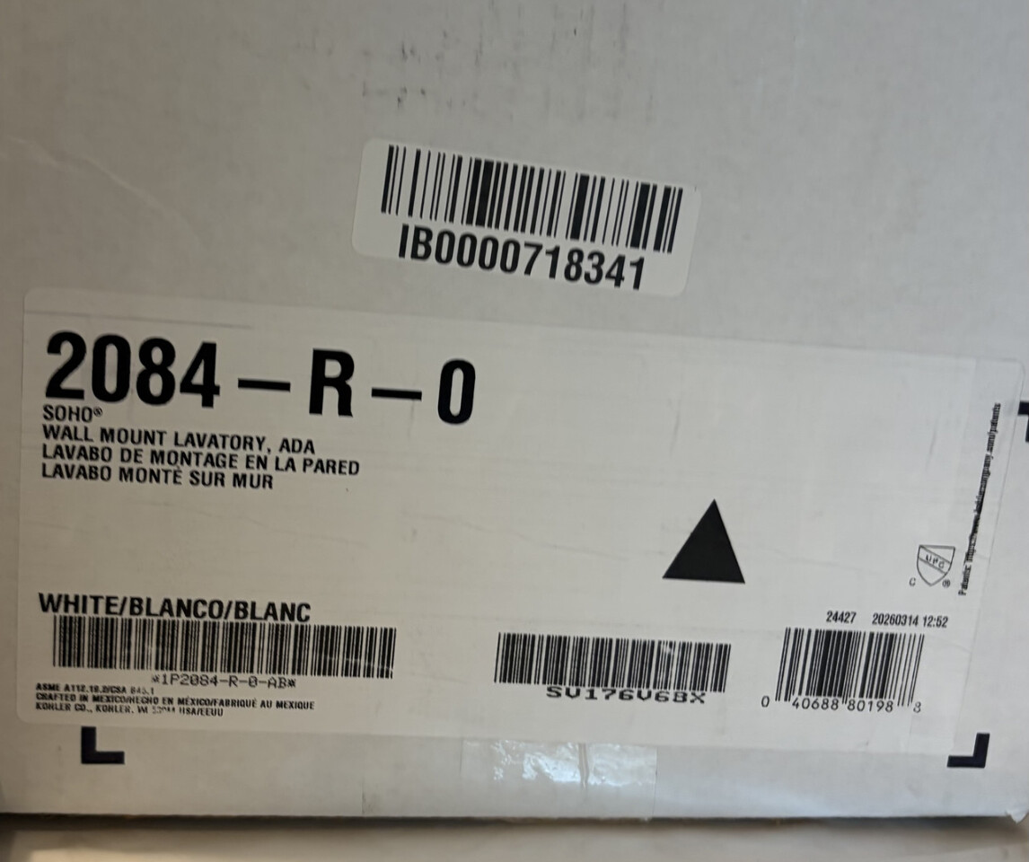 Kohler SOHO Wall Mount Bathroom Sink 18" color white ADA 2084-R-0 This item is new in original open box as shown.