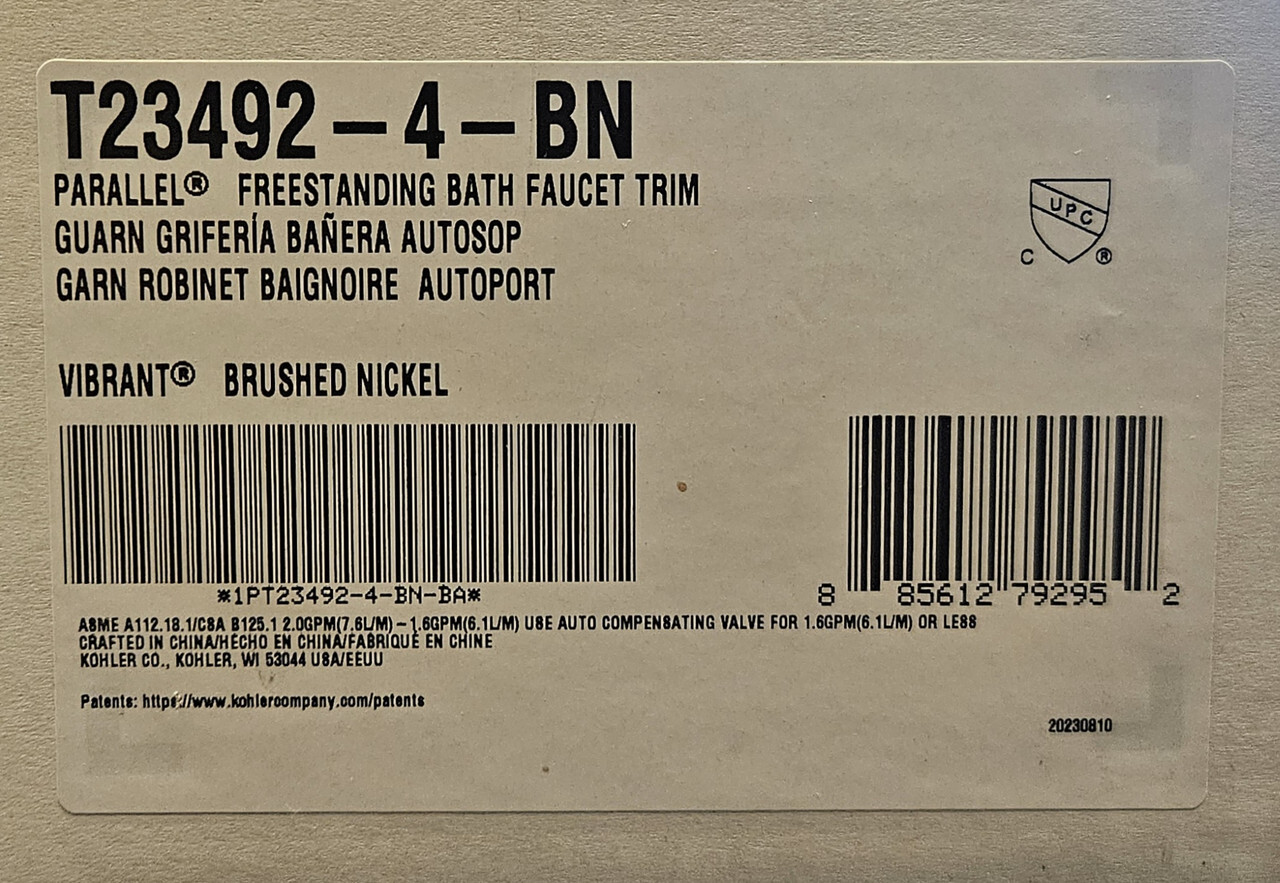 KOHLER T23492-4-BN Parallel Freestanding Bath Faucet Trim This item is new in a slightly freight worn sealed box as shown.