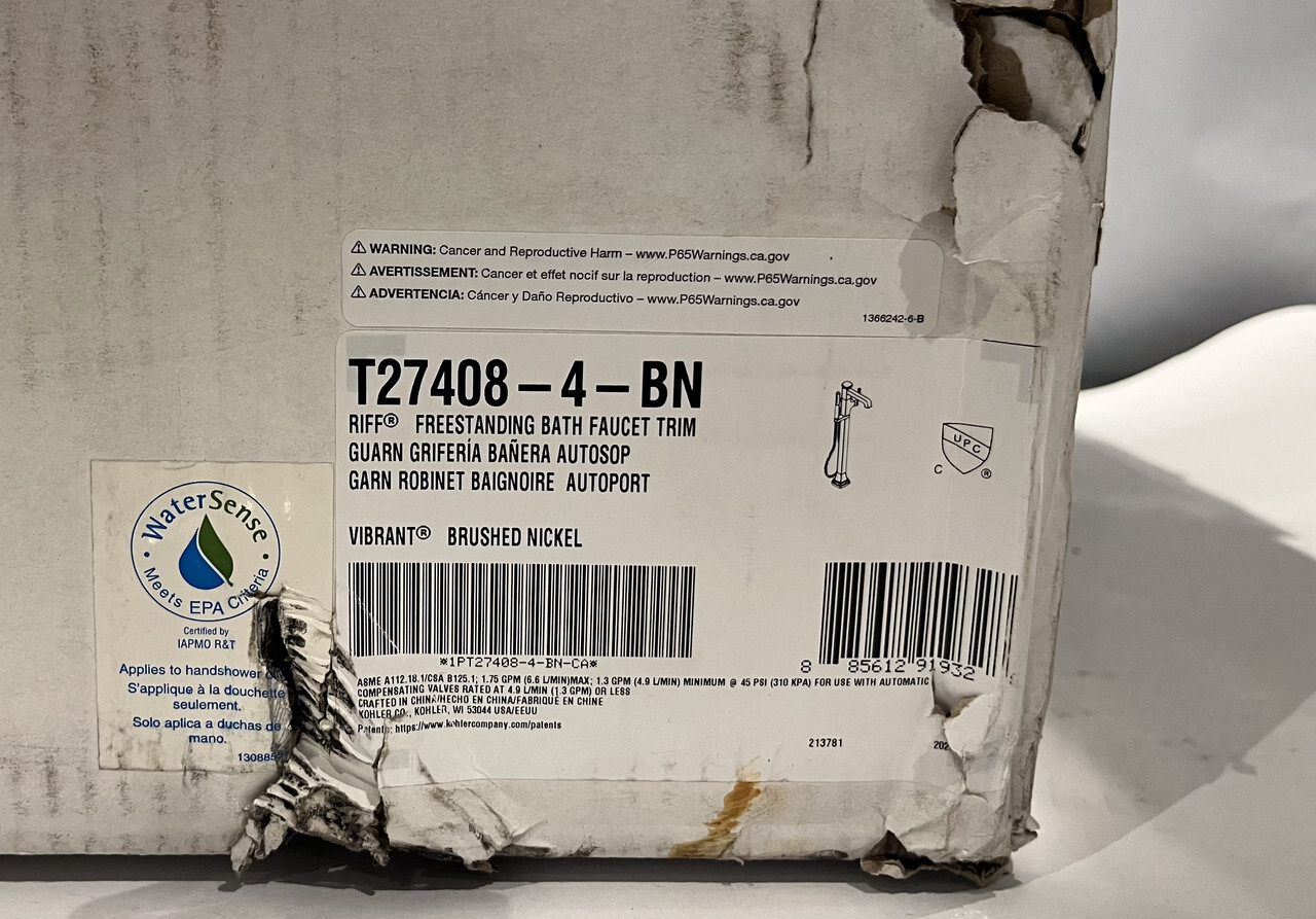 Kohler T27408-4-BN Riff Single Handle Foot Tub Faucet with Handshower B. Nickel This item is new in a slightly freight worn box as shown
