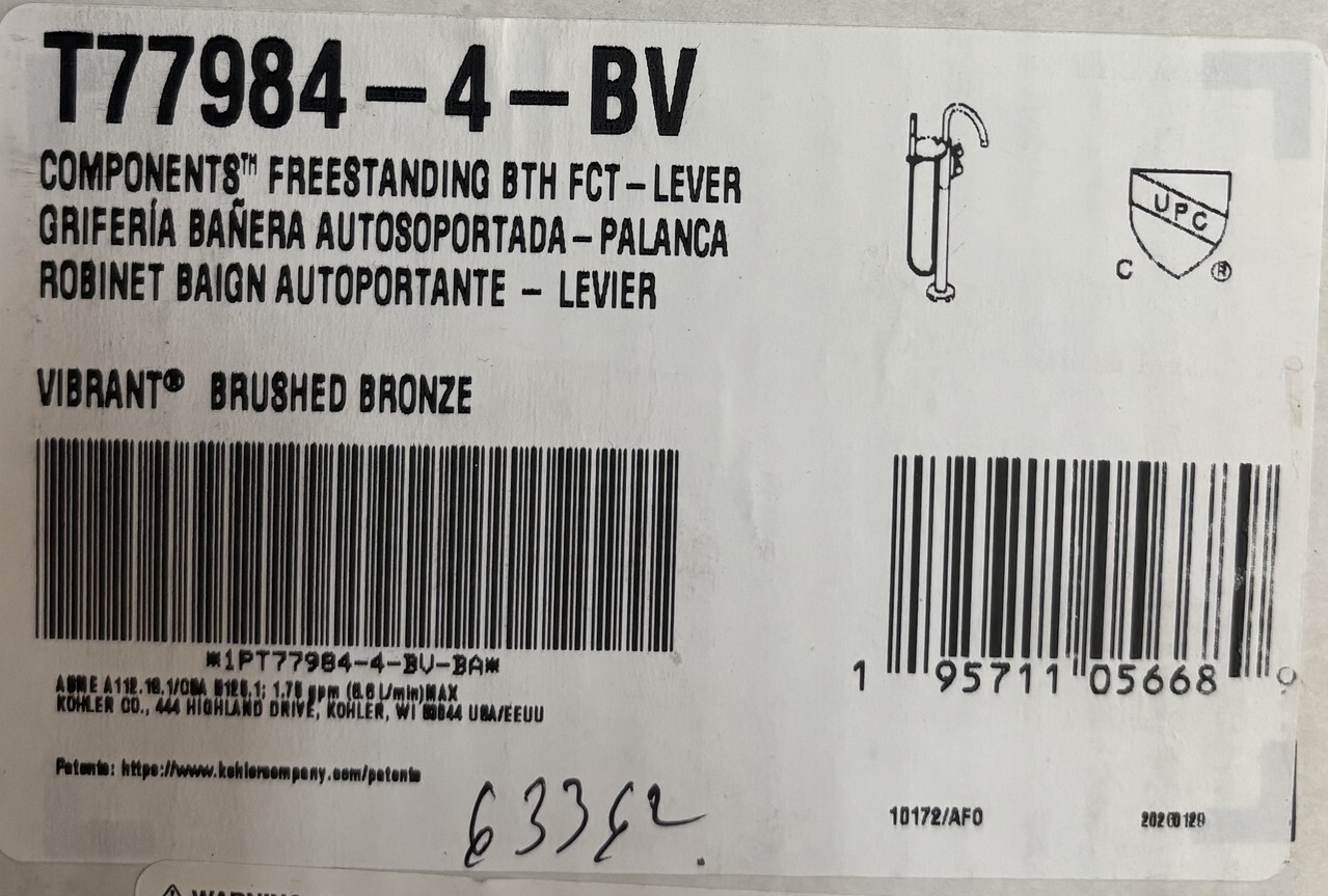 Kohler T77984-4-BV Freestanding Bath Fixture Lever Vibrant Brushed Bronze This item is new and sealed in the original box as shown.