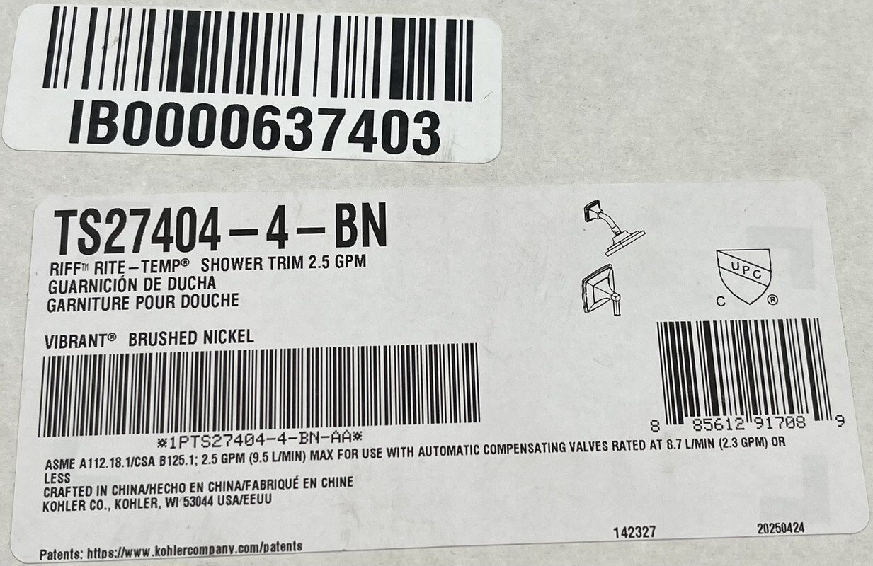 KOHLER TS27404-4-BN BRUSHED NICKEL SHOWER TRIM 2.5 GPM This item is new in an open box as shown.