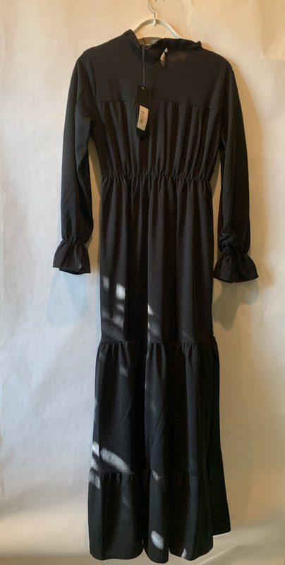 KOL UCLARI LASTIKLI ELBISE SIYA TAVIN BLACK HIDDEN POCKETS LONG WOMENS DRESS US 8 This item is new as shown.