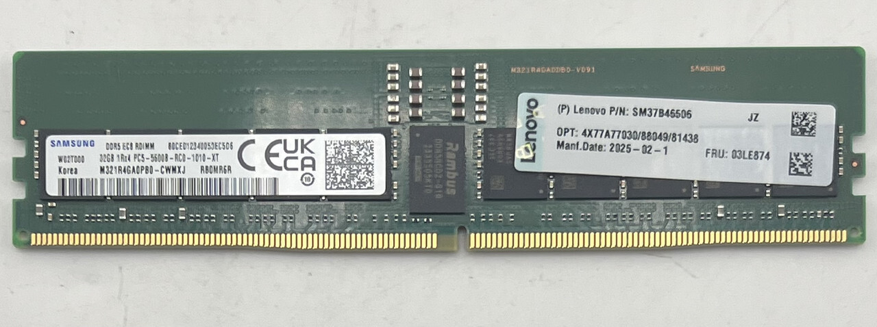 - Notes: This item comes new in box with the following specs as shown: 2x Intel Xeon Gold Srn6h 5515+ 8 Core 3.20 Ghz Processor / 12X SAMSUNG M321R4GA0PB0-CWM 5600MHZ 32GB 1RX4 DDR5 EC8 RDIMM RAM PC5-44800 MEMORY FOR TOTAL MEMORY OF 384GB / 10X MICRON MTFDKCC1T9TGP-1BK1DABYY 7500 PRO 1.92TB PCIE NVME 4.0 U.3 2.5 INCH SSD