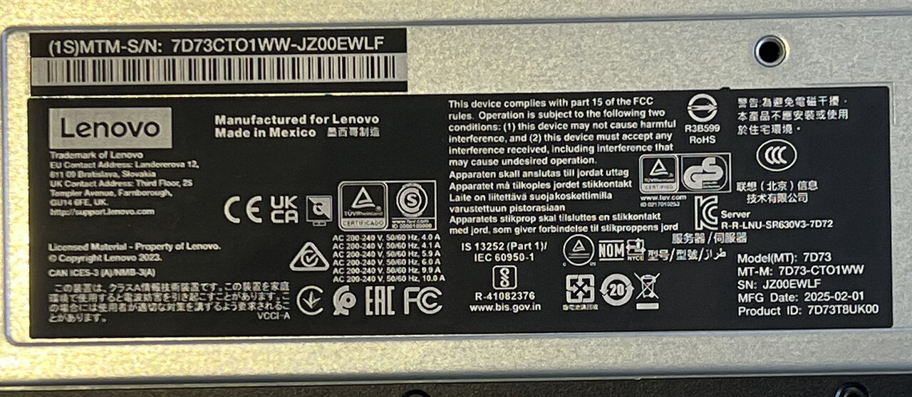 - Model: Thinksystem Sr630 V3