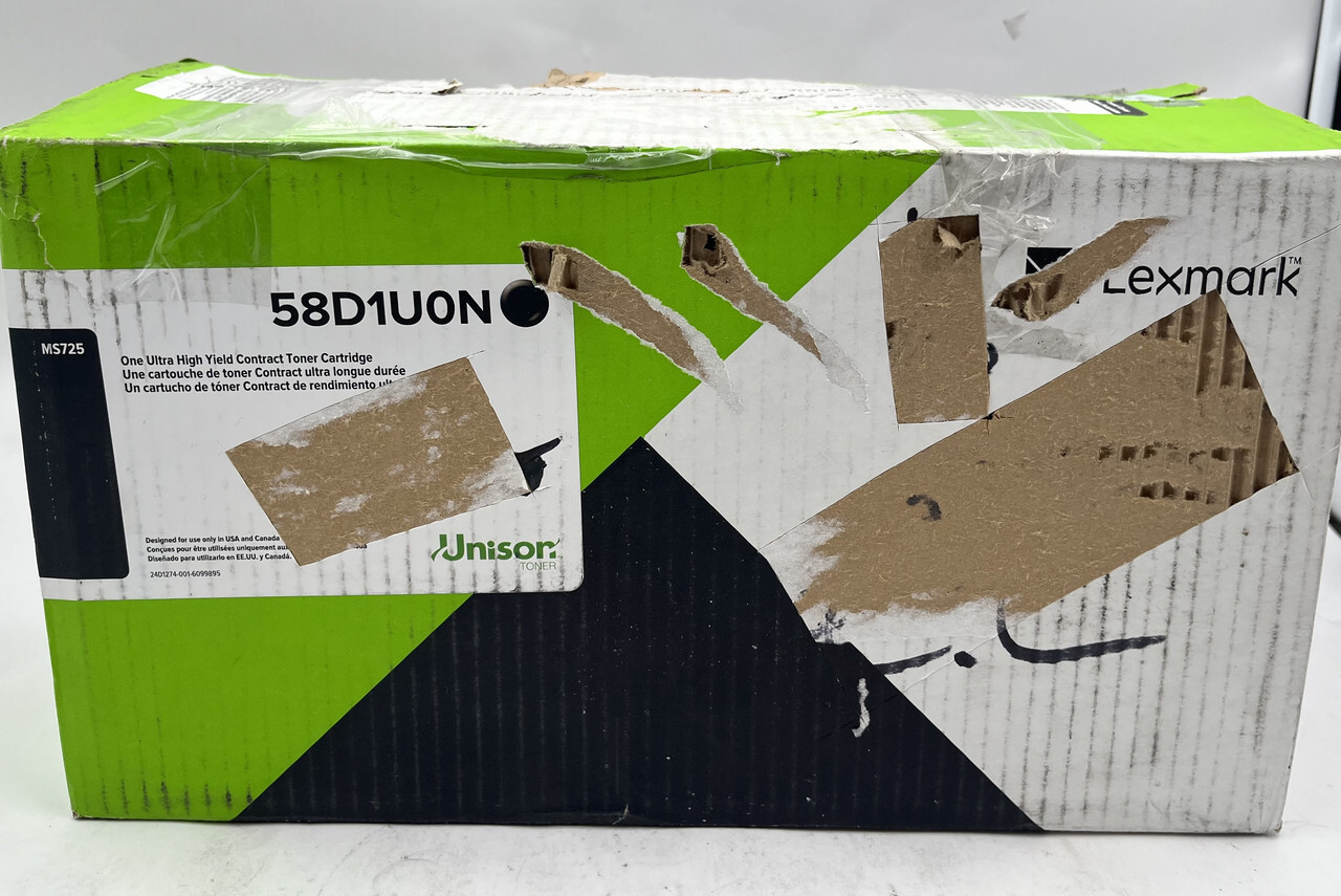Lexmark 58D1U0N ONE ULTRA HIGH YIELD TONER CARTRIDGE BLACK FOR MS725 This item is sealed in an open, freight worn box as shown