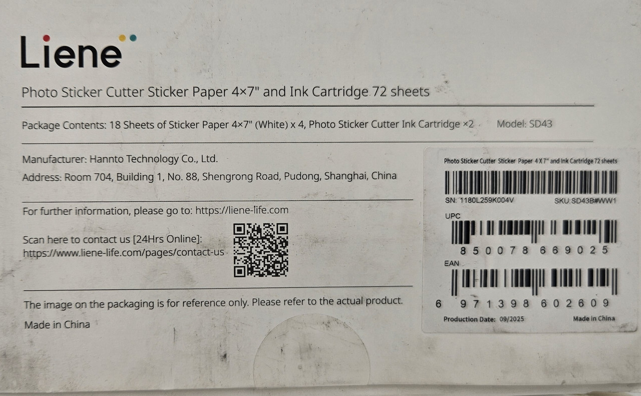 LIENE SD43 Photo Sticker Cutter Sticker Paper 4X7 & Ink Cartridge 72 Sheets This item is new in a selaed box as shown.