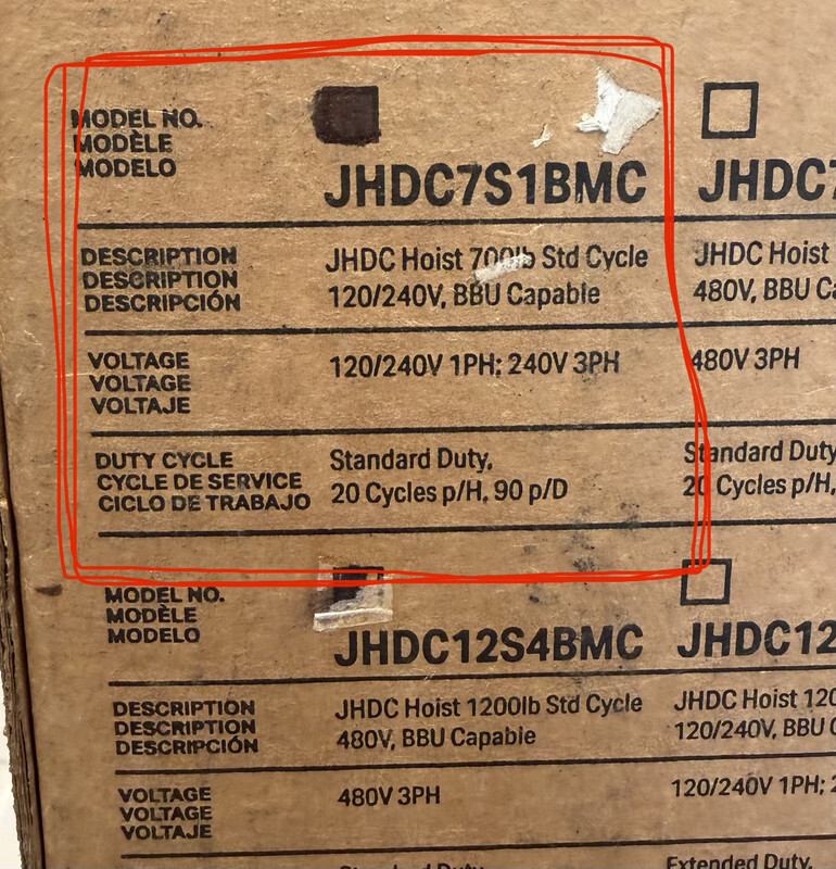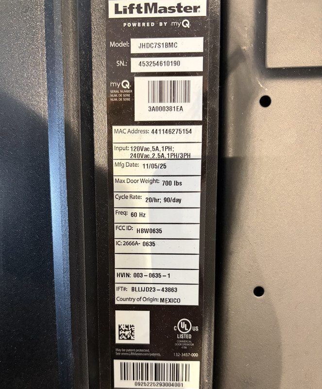 LiftMaster Hoist Maxum Commercial Garage Door Operator JHDC7S1BMC 700LBS max This hoist is in new condtion in orignal, slightly freight worn box as shown. This item is a wallmount/jackshaft hang with max door weight being 700lbs.
