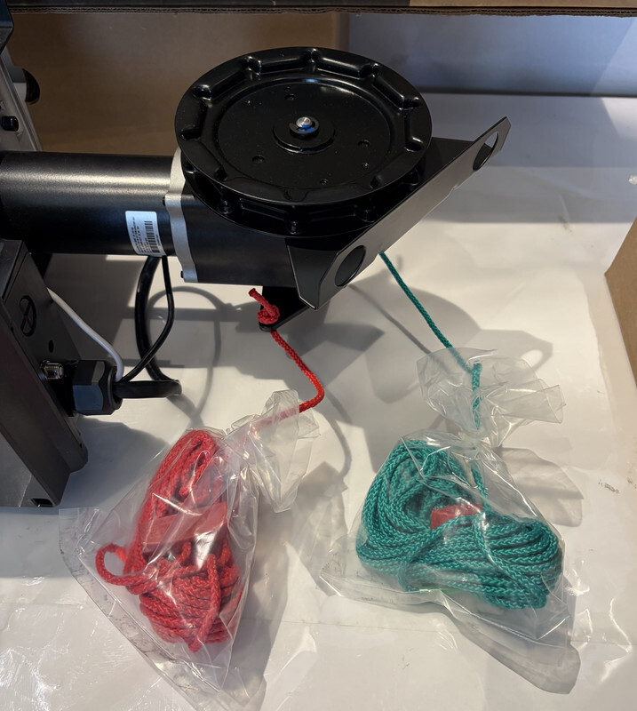 - Notes: This hoist is in new condtion in orignal, slightly freight worn box as shown. This item is a wallmount/jackshaft hang with max door weight being 700lbs.