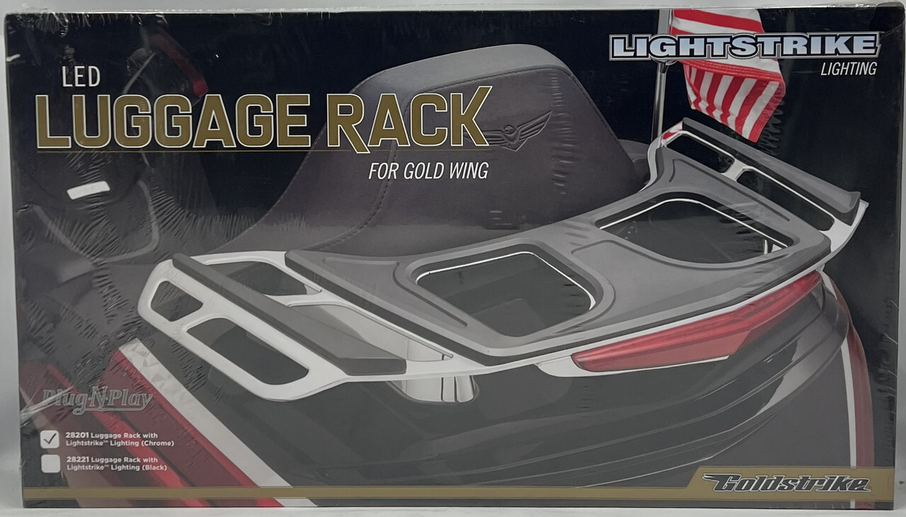 GOLDSTRIKE LIGHTSTRIKE CHROME LIGHTNING LED LUGGAGE RACK GOLD WING TOUR 28201 '21 & UP This item is new as shown.
