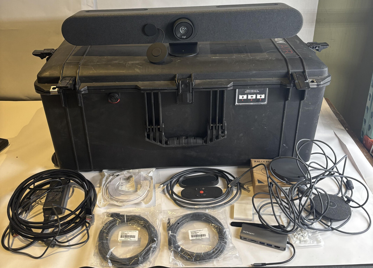LOGITECH VR0020 UHD ALL-IN-ONE VIDEO CONFERENCE CAMERA WEBCAM 4K MINI RALLY BAR This item is used and comes in hard case with power adapter & accessories as shown.