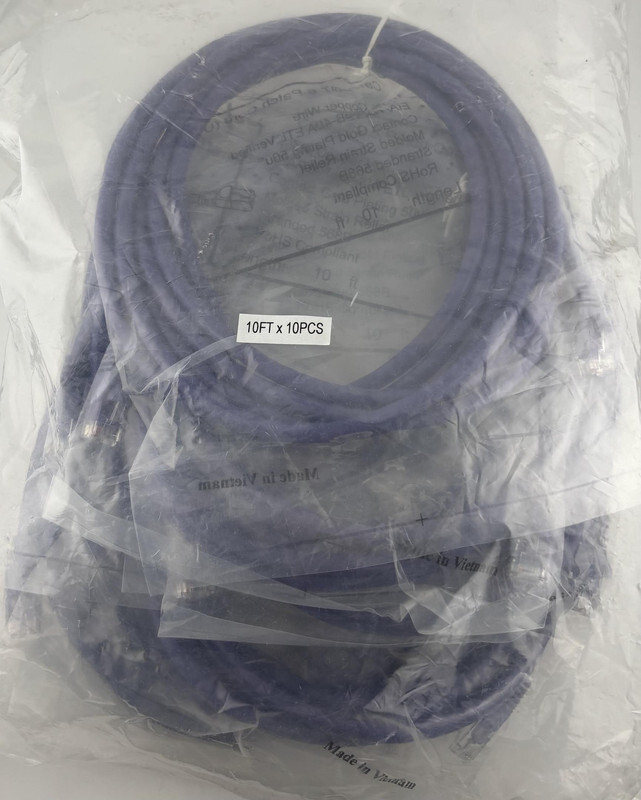 Lot of 10 Category 6 Patch Cord 10ft Networking Cables Stranded 568B Purple These items are new and sealed as shown.
