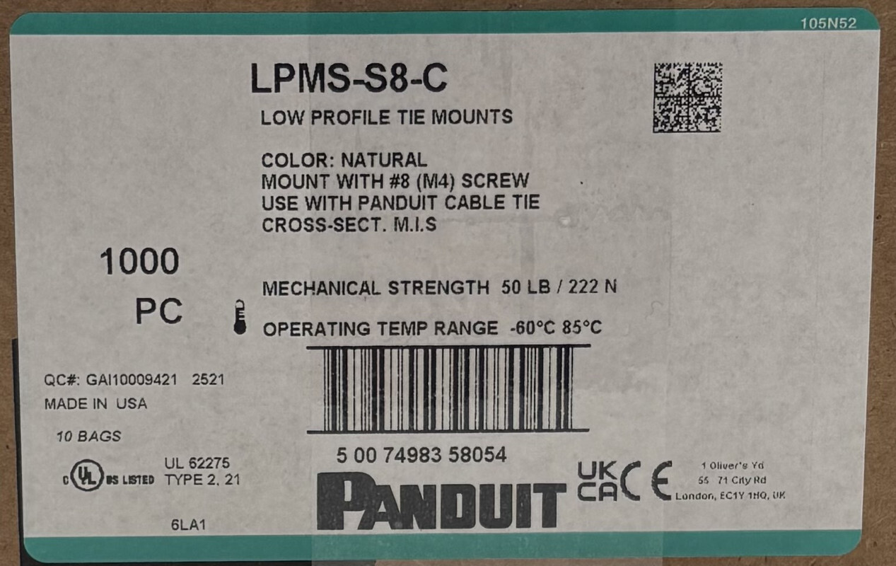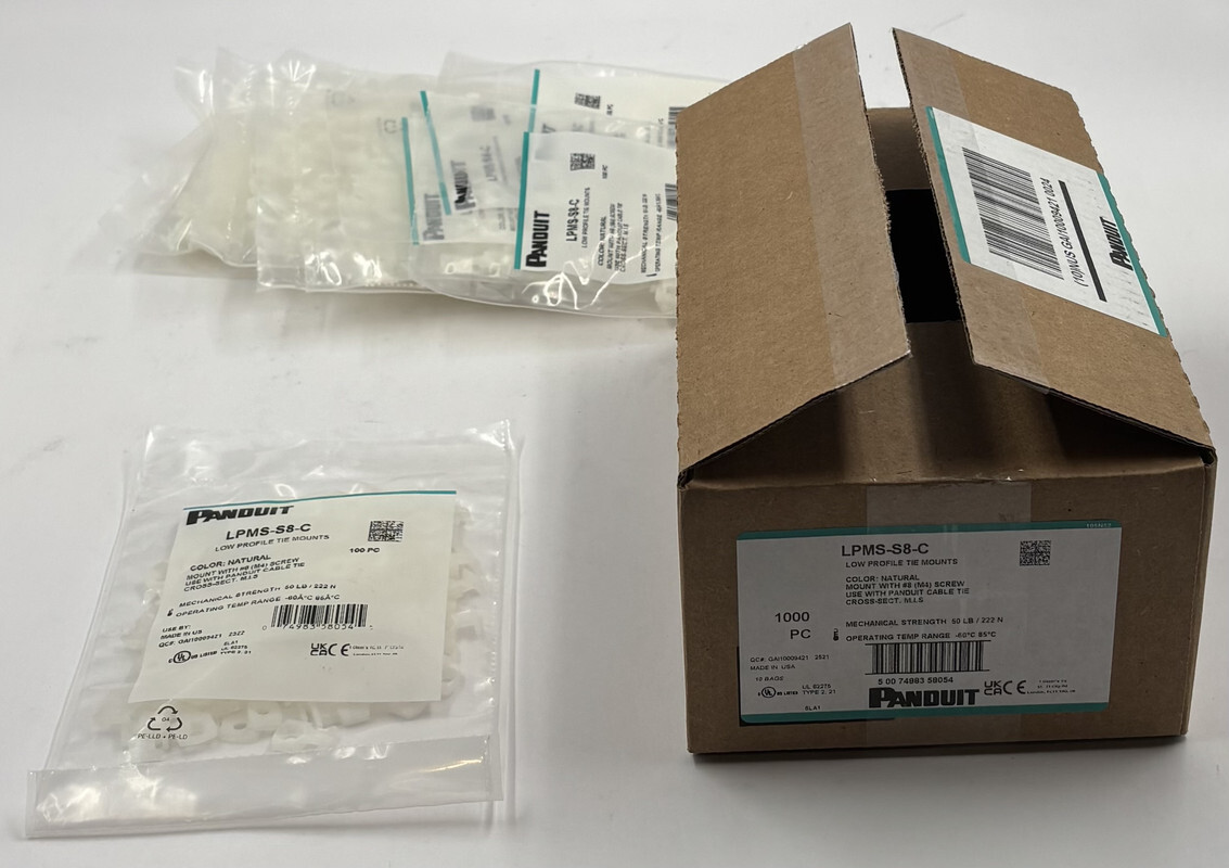 Lot of 1000 Panduit LPMS-S8-C Low Profile Cable Tie Mounts These items are new and sealed as shown.