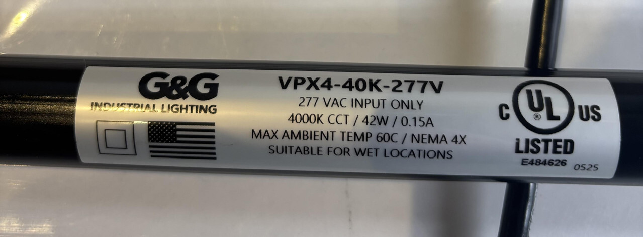 QTY*11 G&G INDUSTRIAL LIGHTING VAPOR SEALED LED VPX4-40K-277V LIGHTING SYSTEM 4' These items are new as shown.