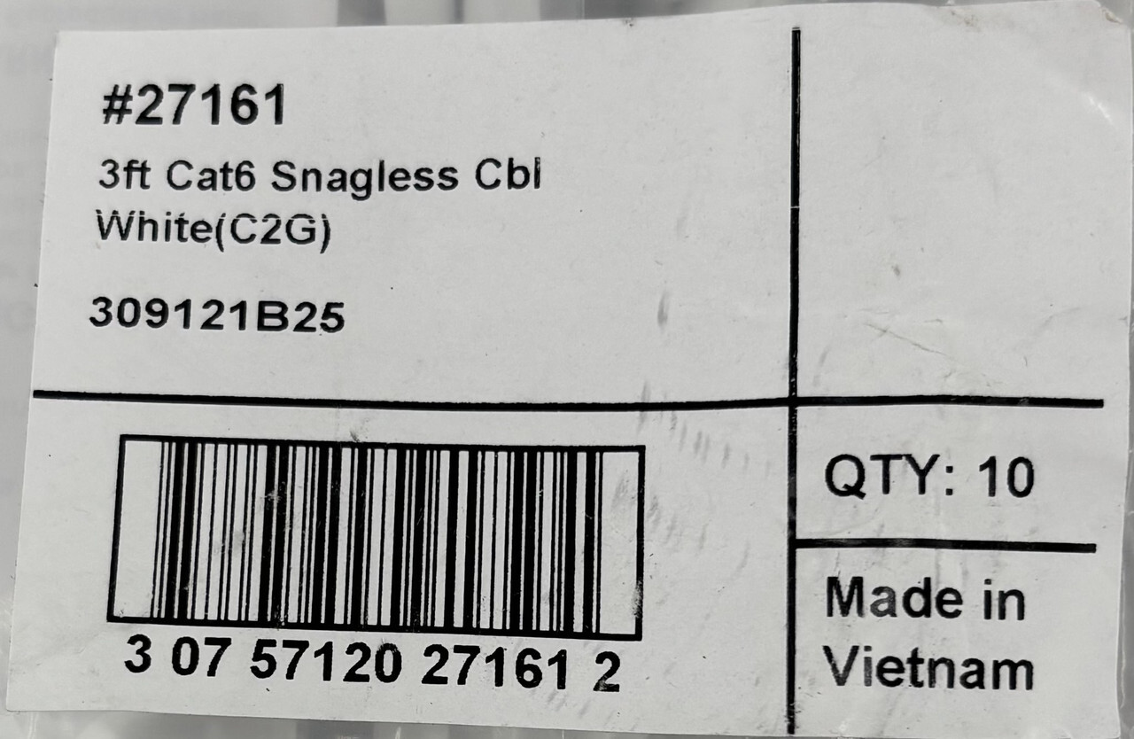 Lot of 14 C2G 27161 3ft Cat6 Snagless Unsielded UTP Ethernet Patch Cable White This item is new as shown.