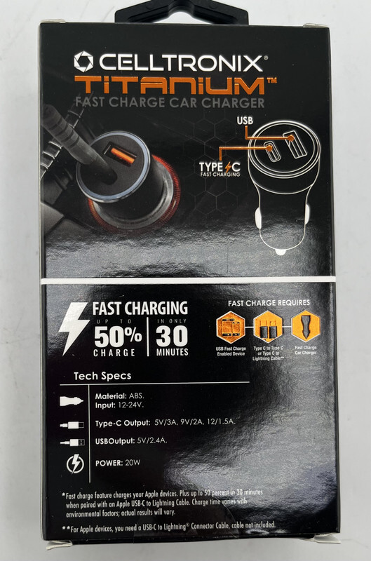 Lot of 2 Celltronix Titanium TTNM-PD Car Charger, output USB and Type C 20W This item is new as shown.