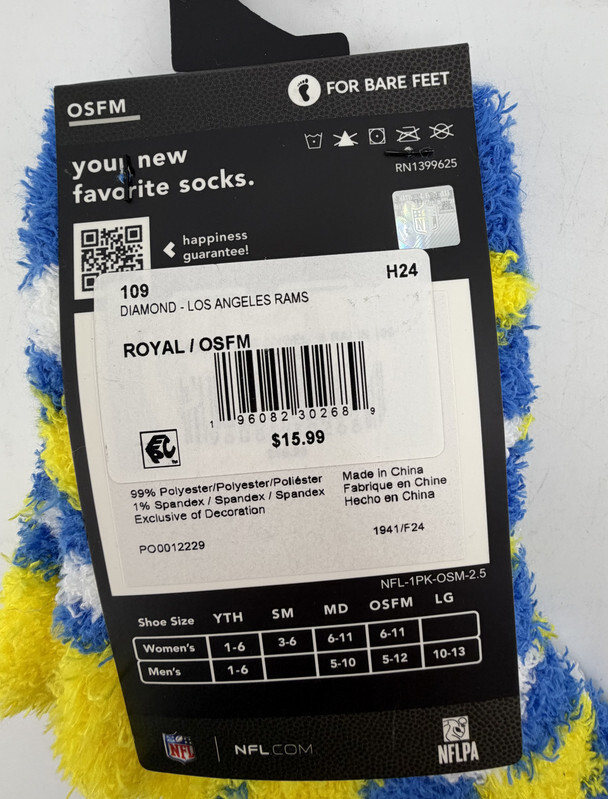 LOT OF 2 FORBAREFEET Apparel 109 Diamond Los Angeles Rams Fuzzy Socks OSFM These socks are in new condition as shown.