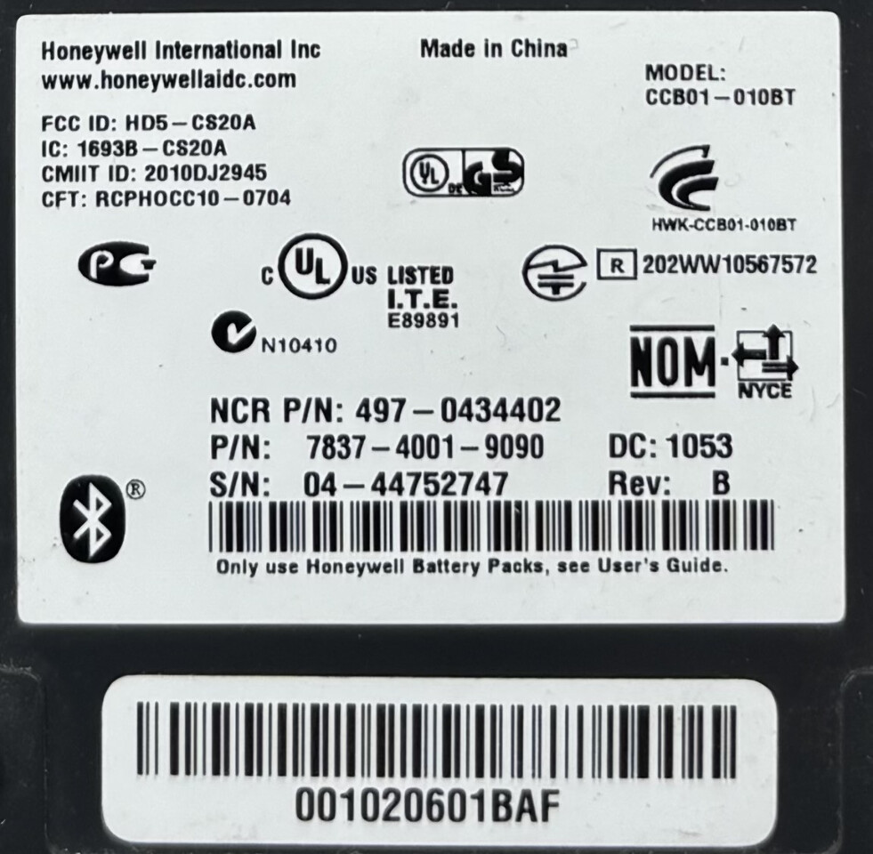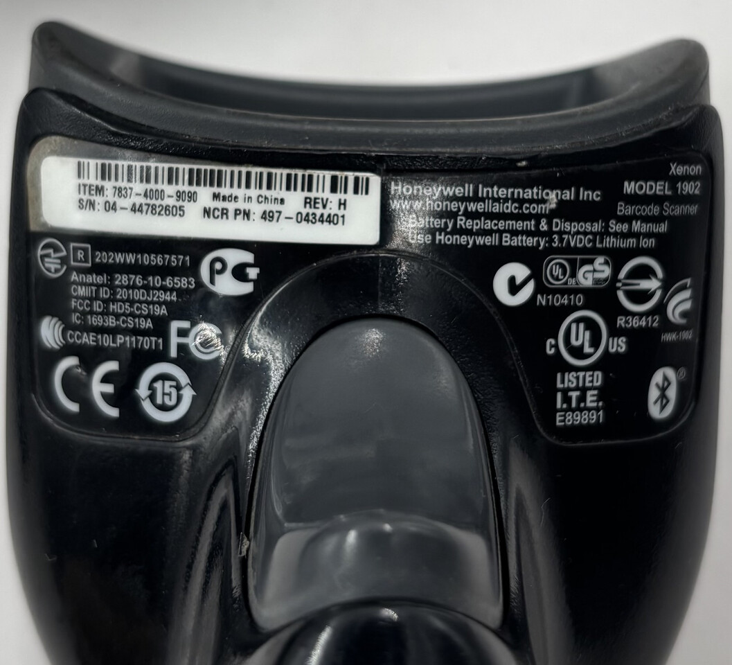 Lot of 2 Honeywell NCR 1902 497-0434401 Black Barcode Scanners With Chargers This item is used as shown.