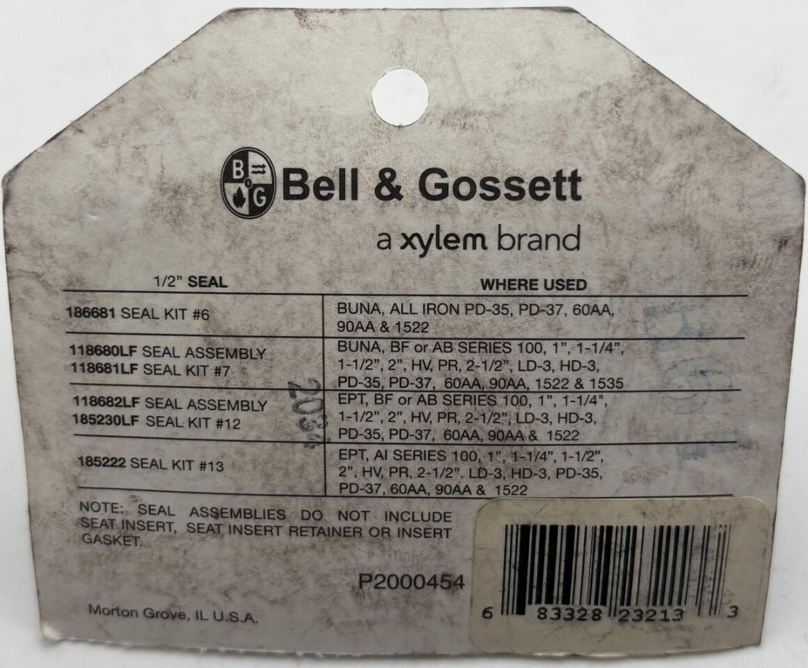 BELL & GOSSETT 185230LF P2000454 SEAL KIT NUMBER 12 HIGH TEMP REPLACEMENT PARTS This item is new in dusty packaging as shown.