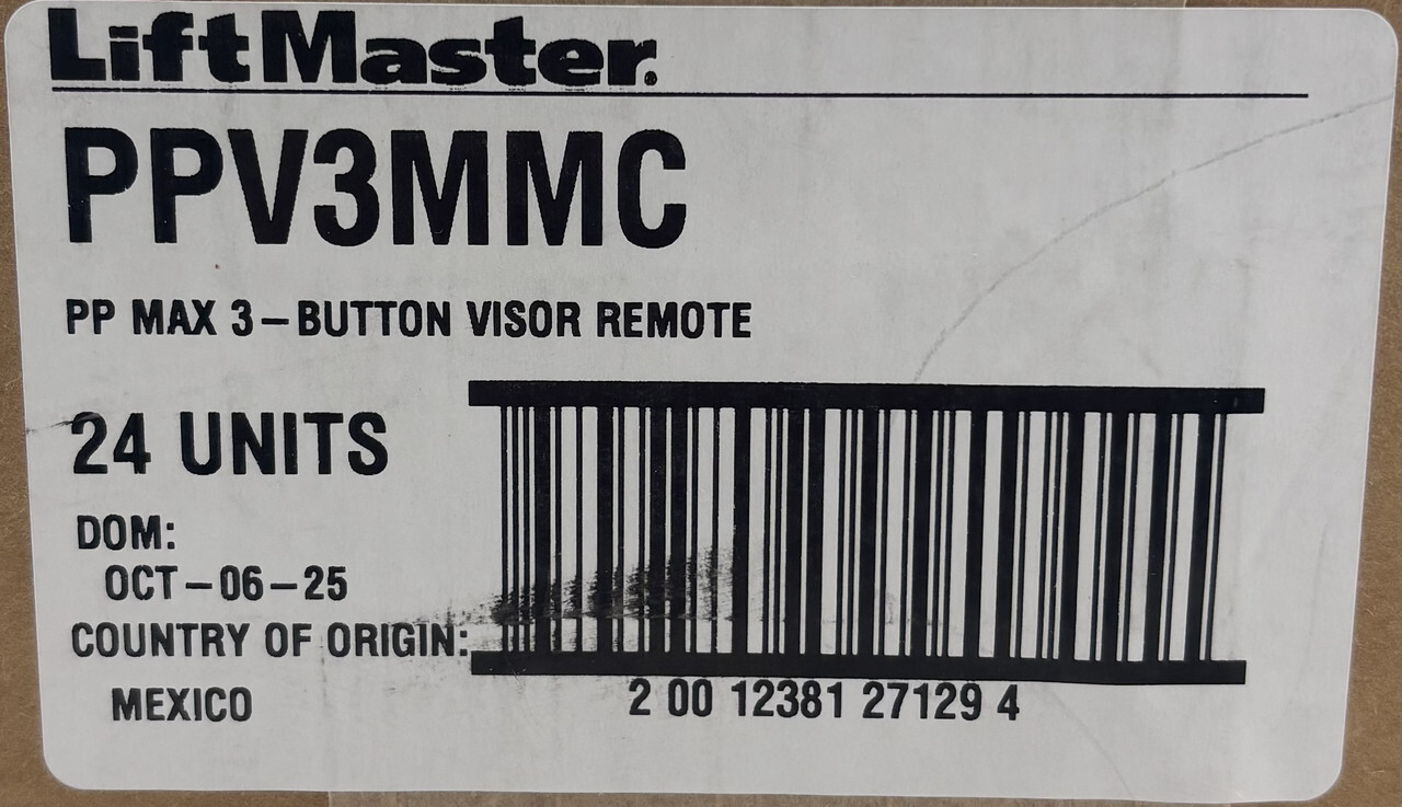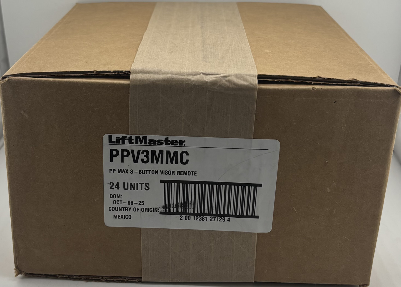 Lot of 24 LiftMaster PPV3MMC PP MAX 3-Button Visor Remote 2 00 12381 27129 4 These items are new and sealed in the original box as shown.