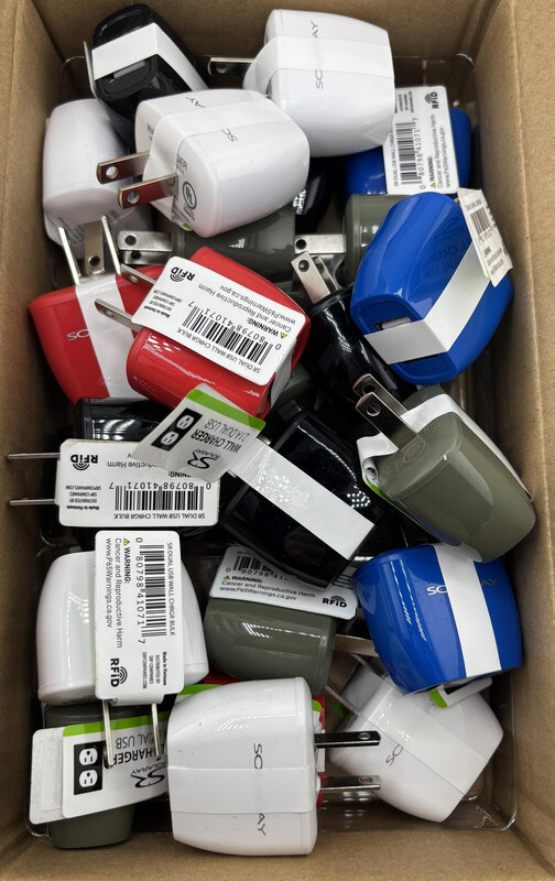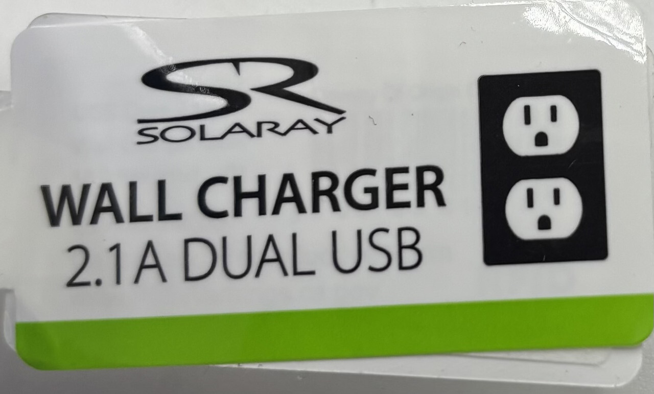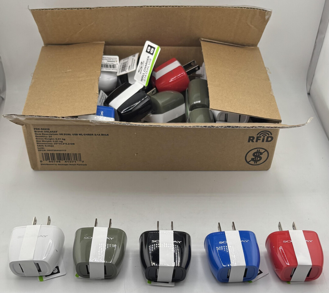 Lot of 24 SolaRay 2.1A Dual USB Assorted Color Wall Charger Bulk These items are new with tags as shown.