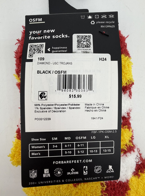 LOT of 3 FORBAREFEET Apparel 109 Diamond USC Trojans Fuzzy Socks OSFM These socks are in new condition as shown.