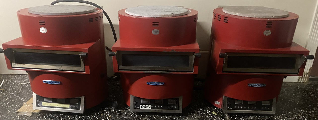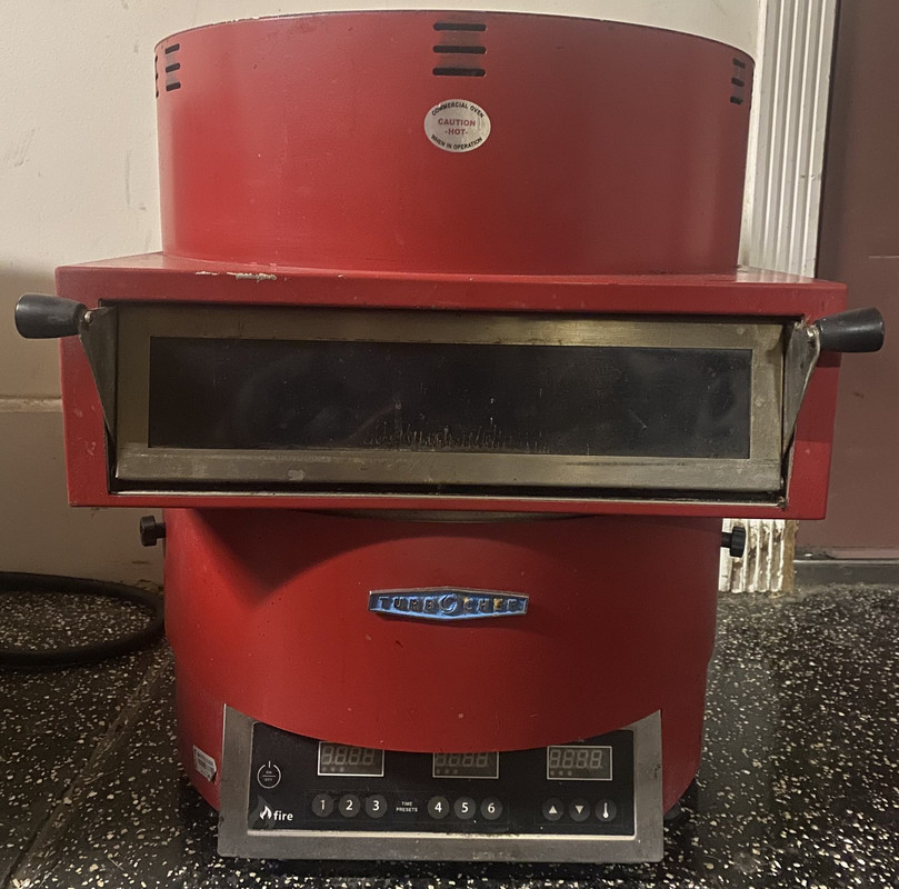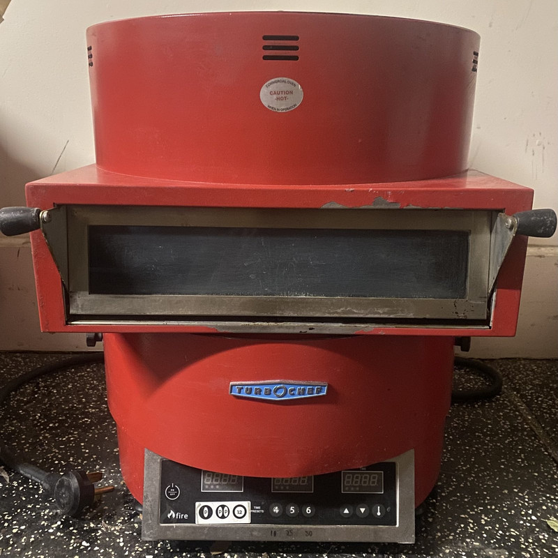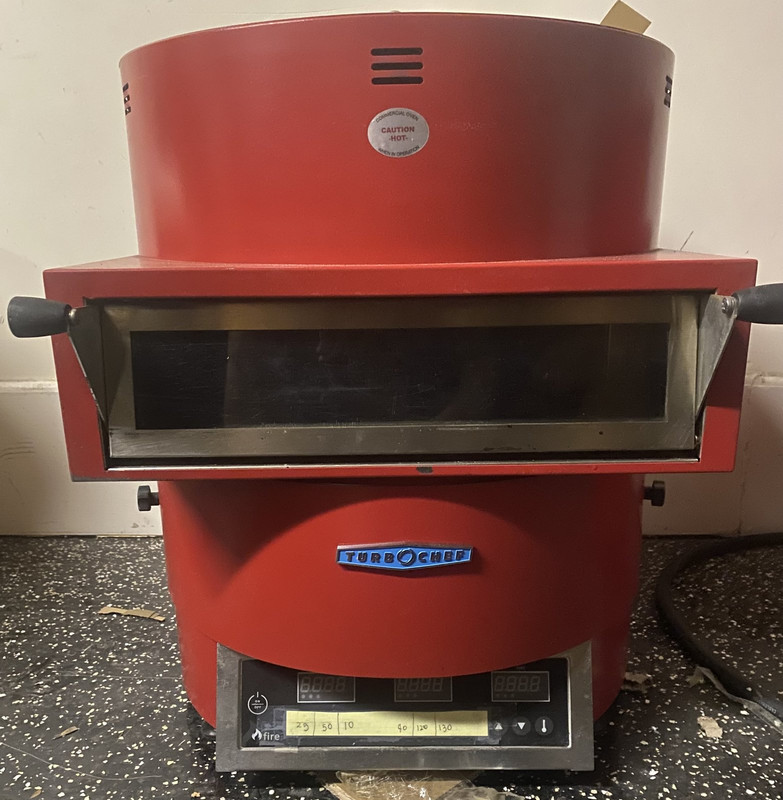 LOT OF 3 TURBOCHEF FIRE RED COUNTERTOP PIZZA OVEN VENTLESS OPERATION W/ STONES These items are in nearly perfect and working condition. Each oven includes 2 oven door handles, a power cord, 2 lower panel thumb screws, and a pizza stone as shown in the images. 2 ovens include all 4 foot knobs and one includes 3 foot knobs. Some slight chipping in paint and some slight wear on buttons as shown in images. Oven's manufacture dates are 09/19, 09/19, and the last ovens mfg date is unknown.