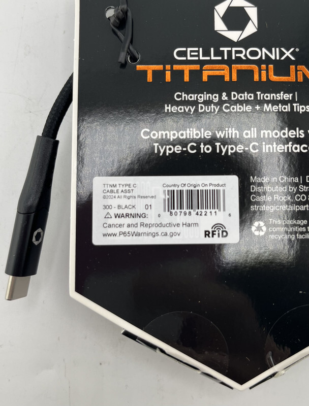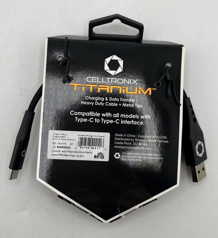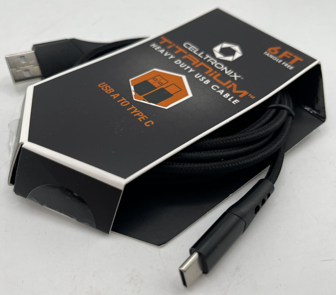 Lot of 4 Celltronix Titanium TTNM Type A to C Cable, Charging and Data 6ft This item is new as shown.