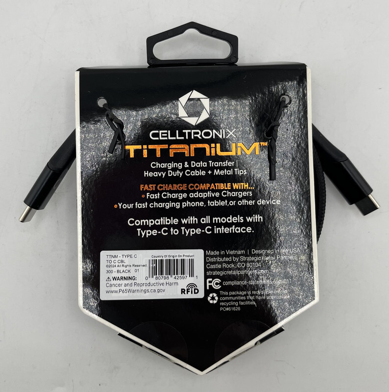 Lot of 4 Celltronix Titanium TTNM Type C to C Cable, 6ft Fast Charging This item is new as shown.