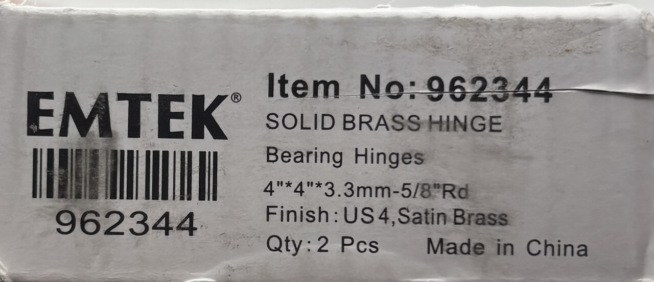 Lot of 4 Emtek 962344 Solid Brass Door Hinge Bearing Hinges 4"*4"*3.3mm-5/8"Rd These items are new as shown.