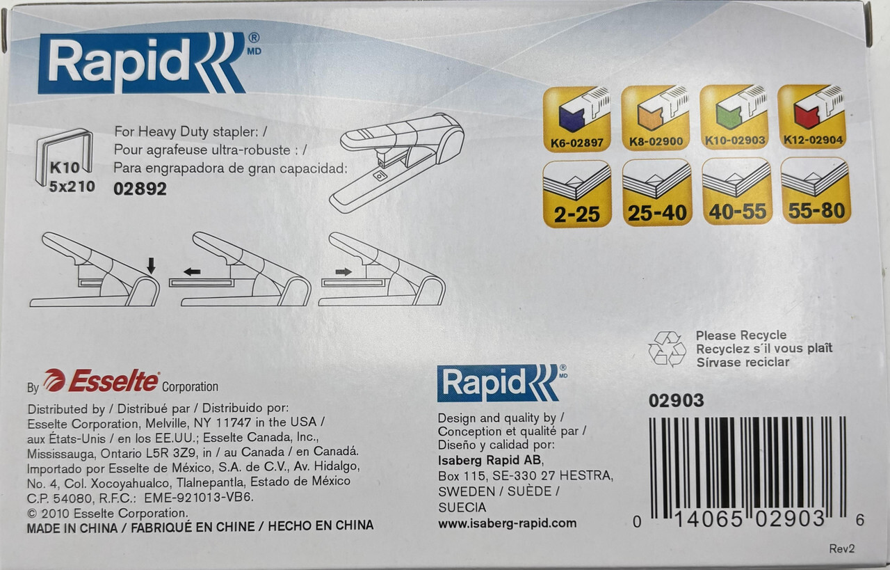 Lot of 5 Rapid Heavy Duty K10 HD Staple Cartridge 5X210 PCS. These items are brand new as shown.