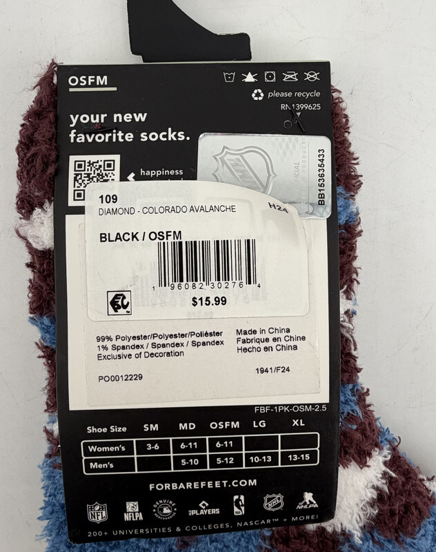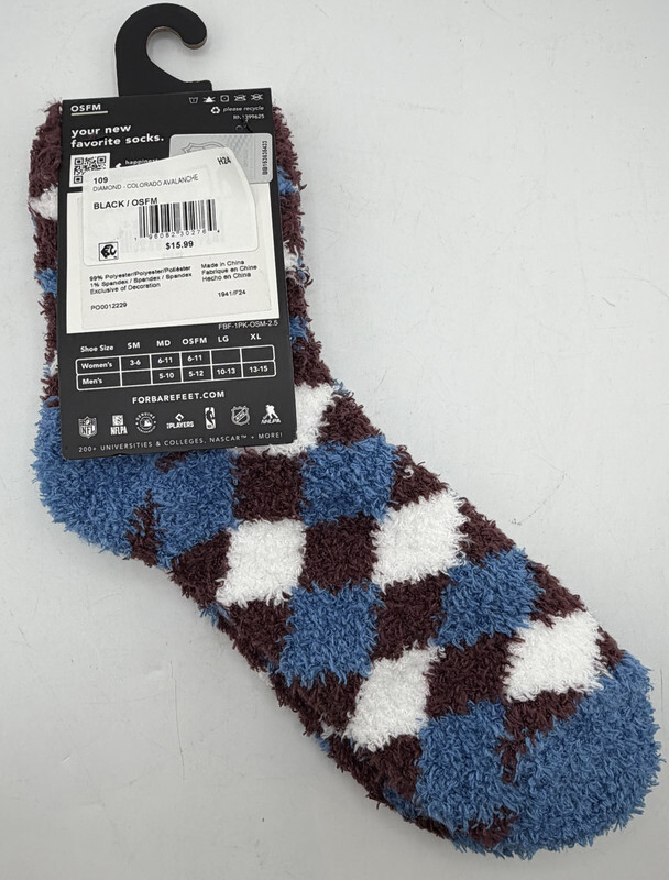 LOT OF 6 FORBAREFEET Apparel 109 Diamond Colorado Avalance Fuzzy Socks OSFM These socks are in new condition as shown.
