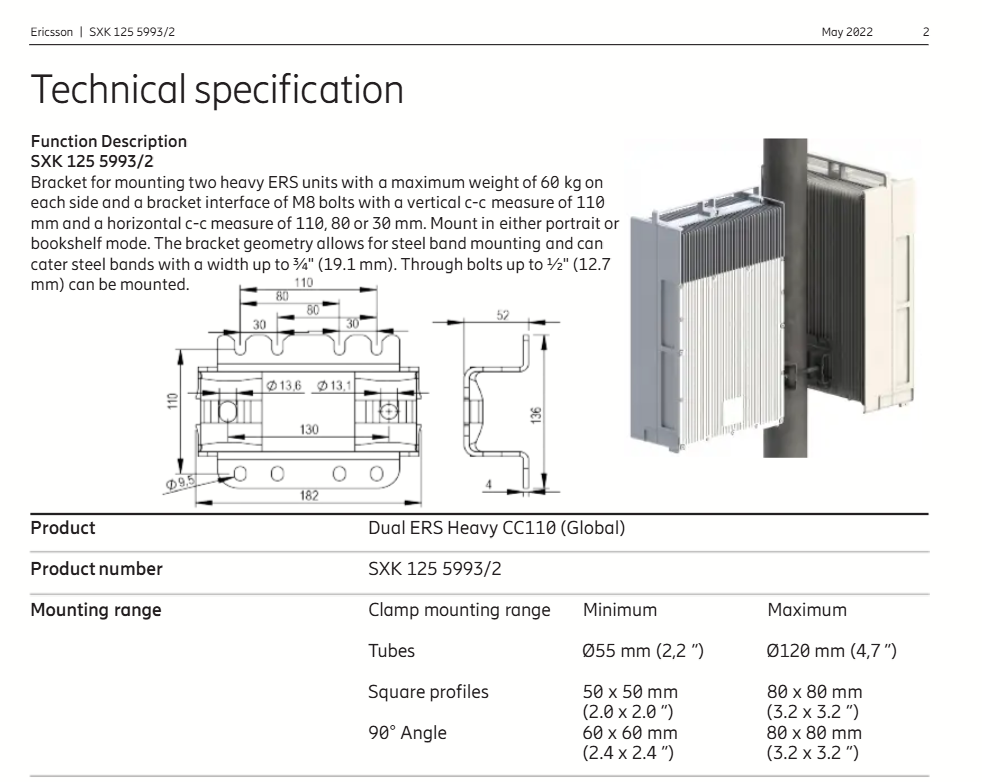 Mafi Ericsson Dual ERS Heavy Bracket SXK1255993/2 for radio 4460 This items come as shown.
