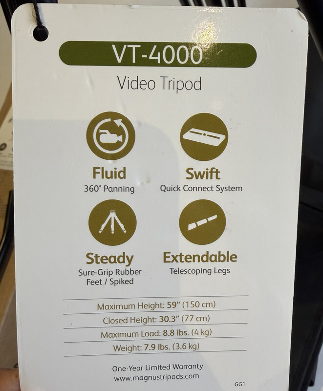 MAGNUS VT-4000 VIDEO TRIPOD STAND WITH CARRY BAG VT-QRP400 This item is sealed in an open box as shown