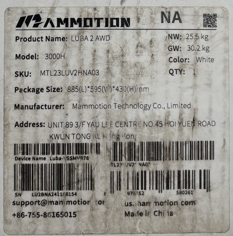 Mammotion 3000H LUBA 2 AWD White Perimeter Wire Free Robotic Lawn Mower P/N MTL23LUV2HNA03 This item is new and comes in a freight worn box as shown.