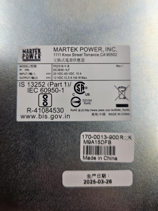 Martek Power PS2518-Y-B Dc Power Supply This item is new in an opened box as shown.