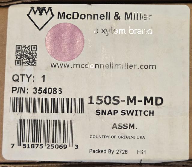 McDonnell & Miller SWA150S-M-MD 354086 Snap Switch Assembly For SWA150S/SWA159S This item is new in freightworn box as shown.