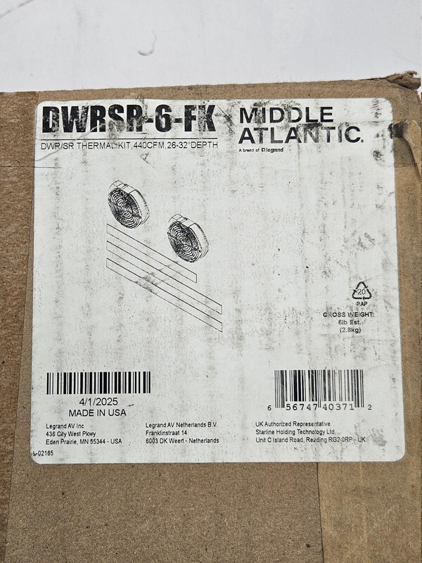 Middle Atlantic DWSRSR-6-FK AC Fan 32"MD Thermal Kit For DWR And SR Series Racks This item is new in a freight-worn box, as shown.
